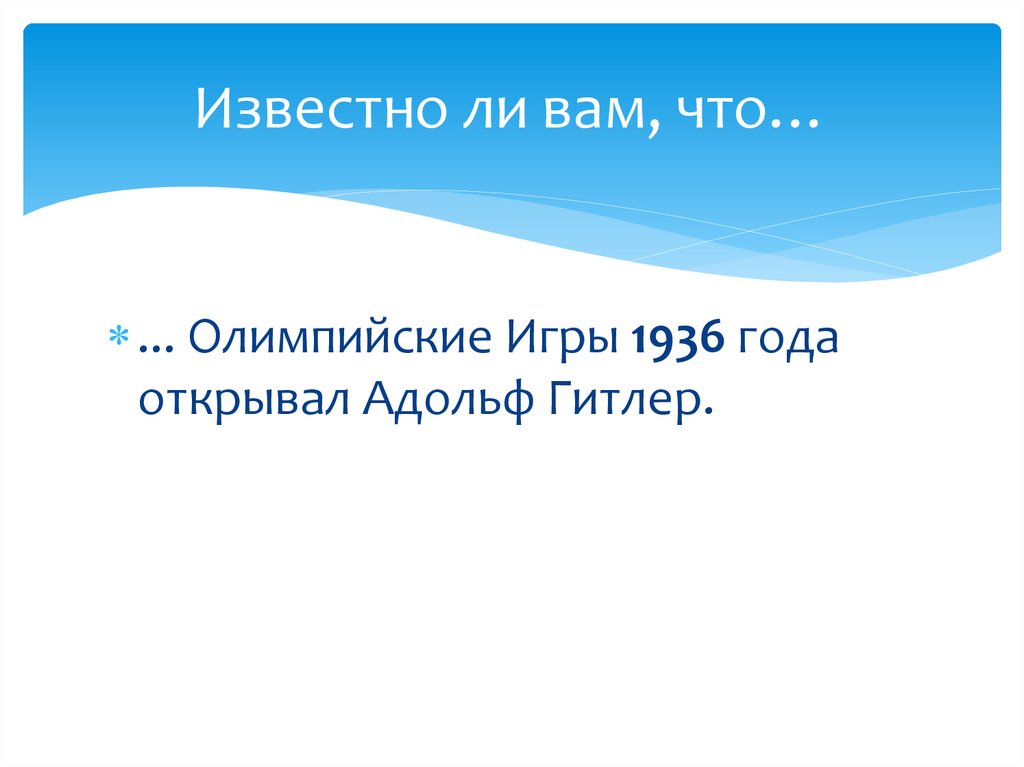 Известно ли вам, что…... Олимпийские Игры 1936 года