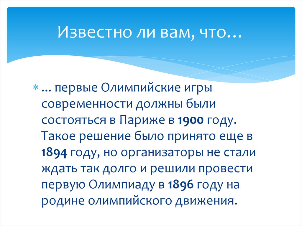 Известно ли вам, что…... первые Олимпийские игры