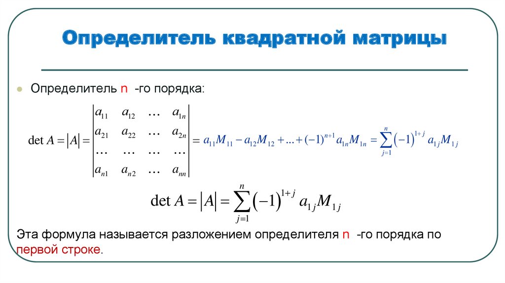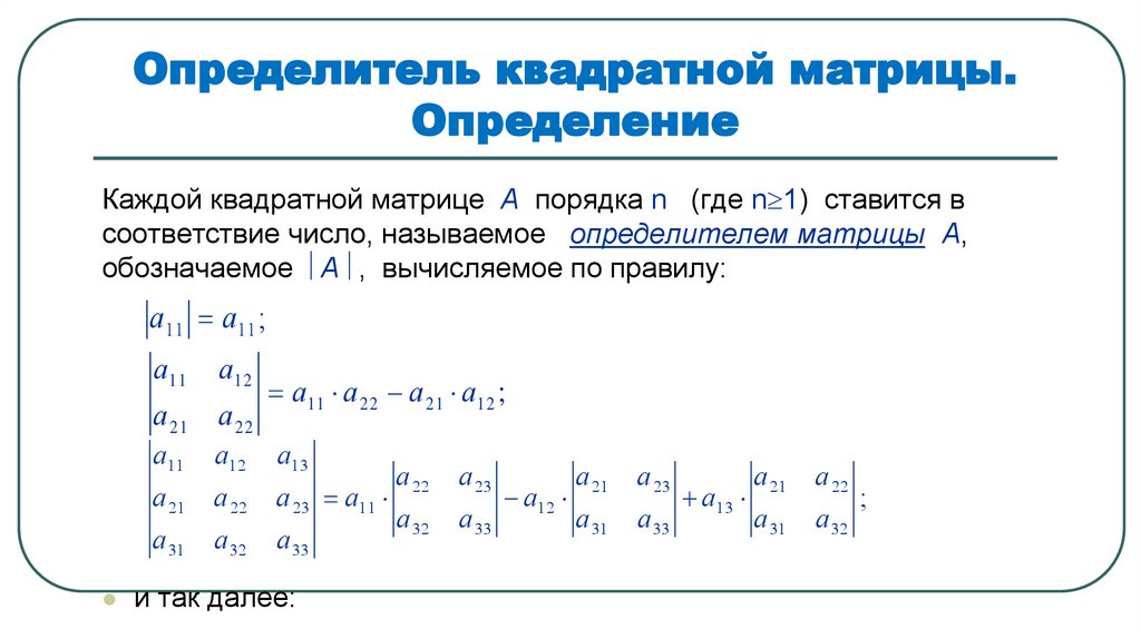 Определитель квадратной матрицы.Определение