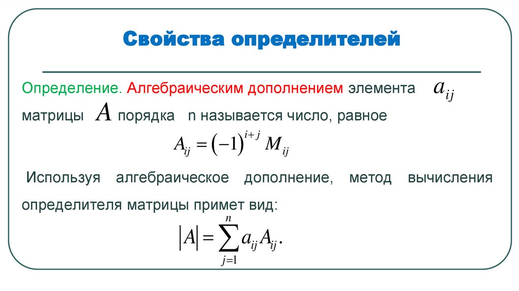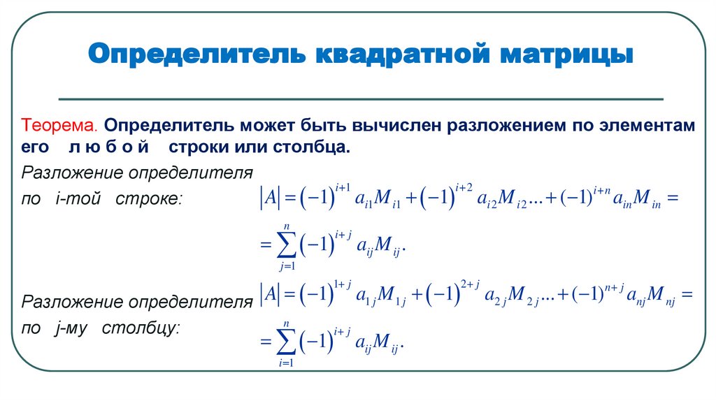 Предположим, что нами уже введено понятие определителя порядка