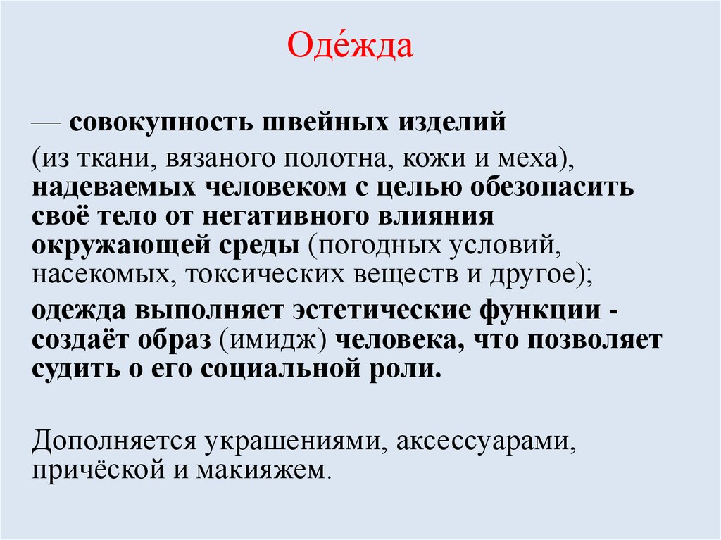 одежда выполняет эстетические функции создаёт образ (имидж) человека, что позволяет