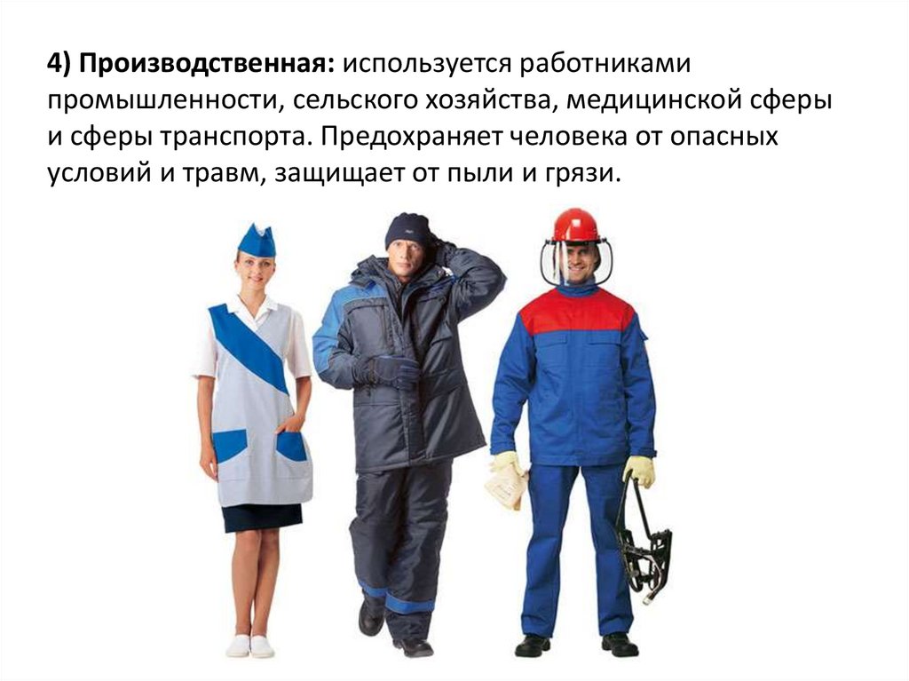 4) Производственная: используется работникамипромышленности, сельского хозяйства, медицинской сферы