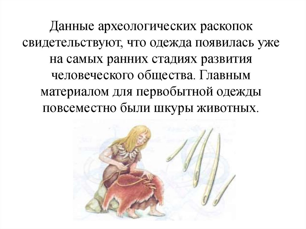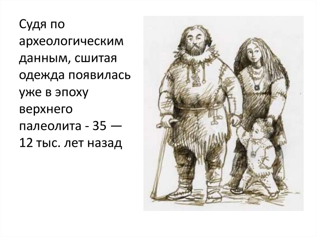 Данные археологических раскопоксвидетельствуют, что одежда появилась уже