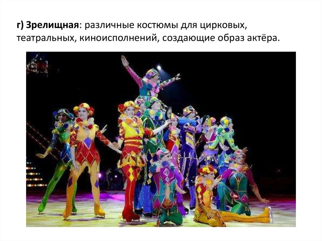 г) Зрелищная: различные костюмы для цирковых,театральных, киноисполнений, создающие образ актёра.