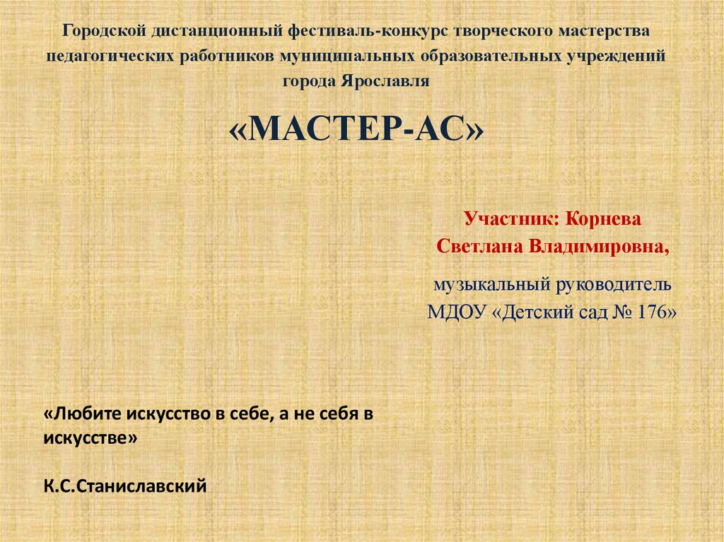 Городской дистанционный фестиваль-конкурс творческого мастерствапедагогических работников муниципальных образовательных учреждений