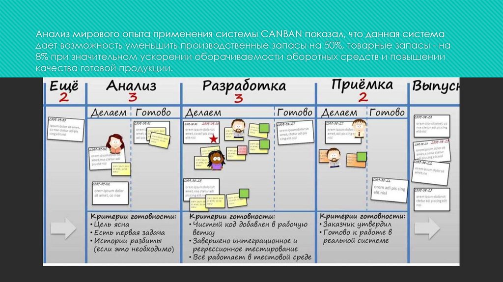 Анализ мирового опыта применения системы CANBAN показал, что данная системадает возможность уменьшить производственные запасы на 50%, товарные запасы - на