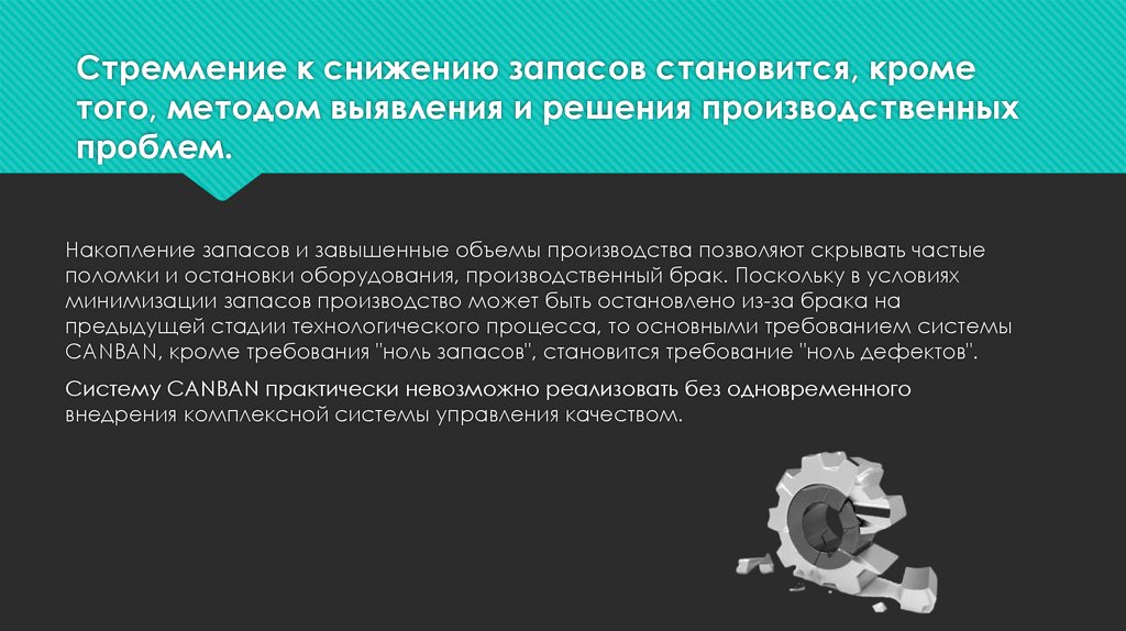 Стремление к снижению запасов становится, крометого, методом выявления и решения производственных