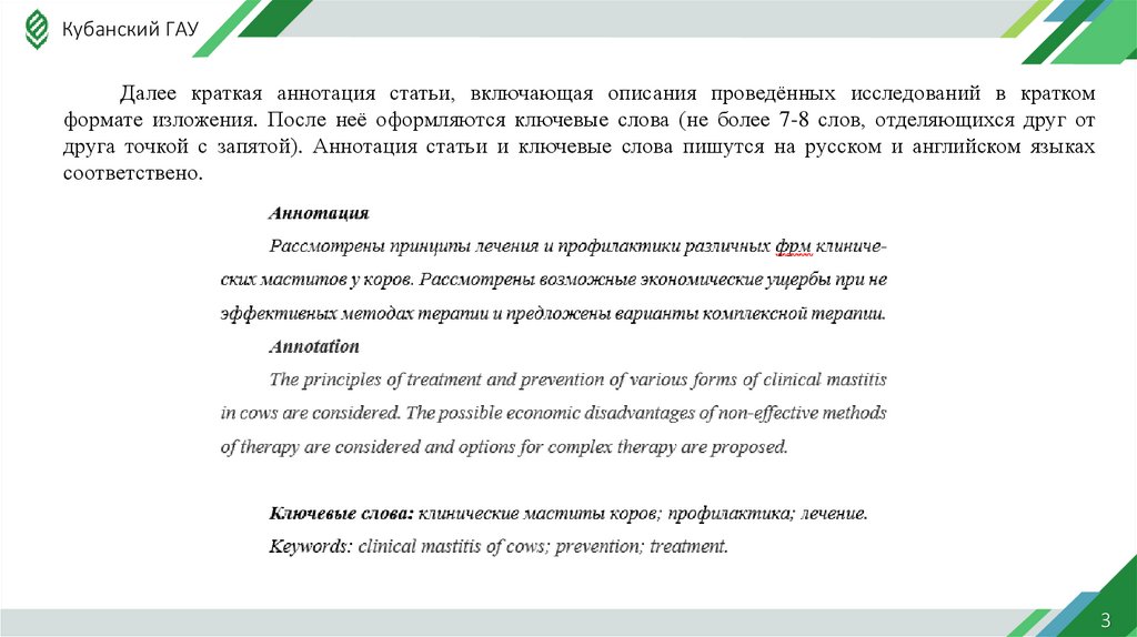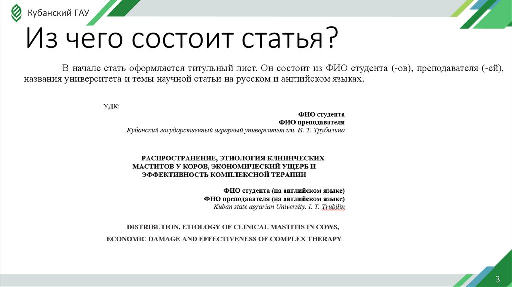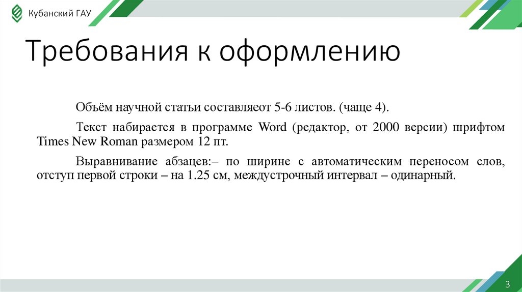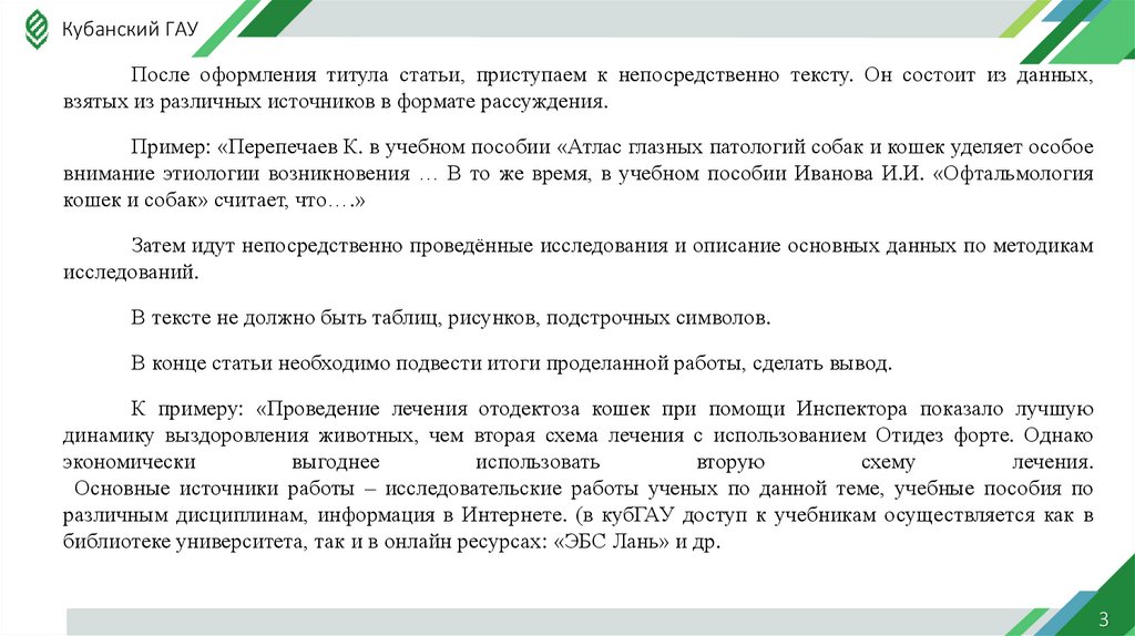 Кубанский ГАУПосле оформления титула статьи, приступаем к непосредственно тексту. Он состоит из данных,