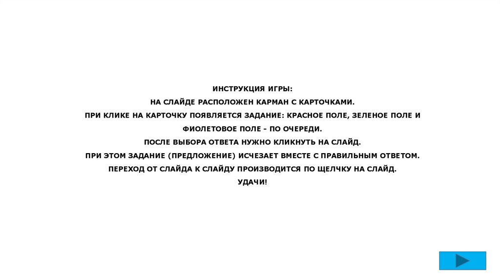 ИНСТРУКЦИЯ ИГРЫ:НА СЛАЙДЕ РАСПОЛОЖЕН КАРМАН С КАРТОЧКАМИ.