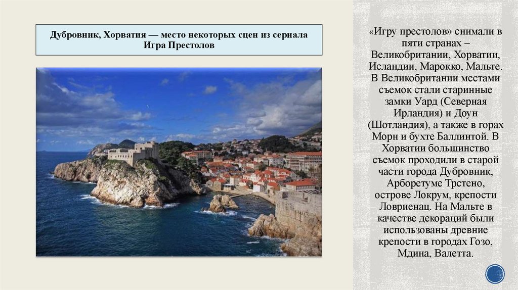 ЛЁД И ПЛАМЯВ свою очередь, места съёмок знаменитой «Игры Престолов» могут составить туристический