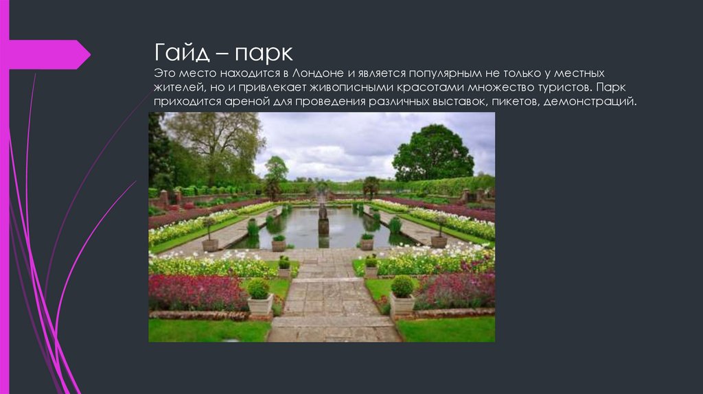 Гайд – паркЭто место находится в Лондоне и является популярным не только у местных