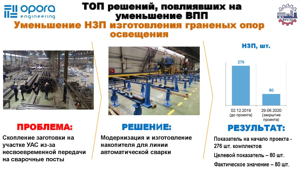 ТОП решений, повлиявших на уменьшение ВПП. Уменьшение НЗП изготовления граненых опор освещения