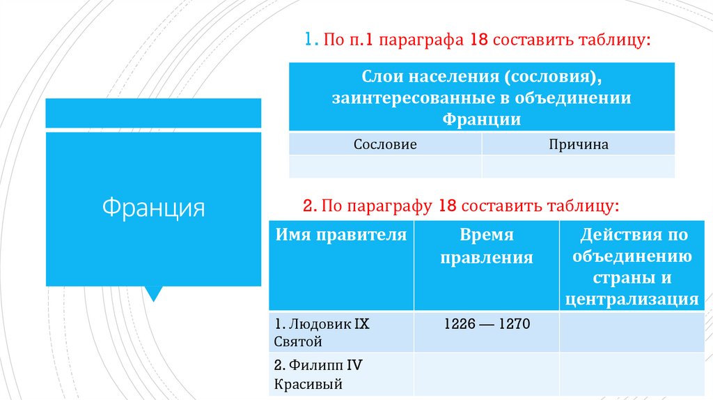 1. По п.1 параграфа 18 составить таблицу:Слои населения (сословия),