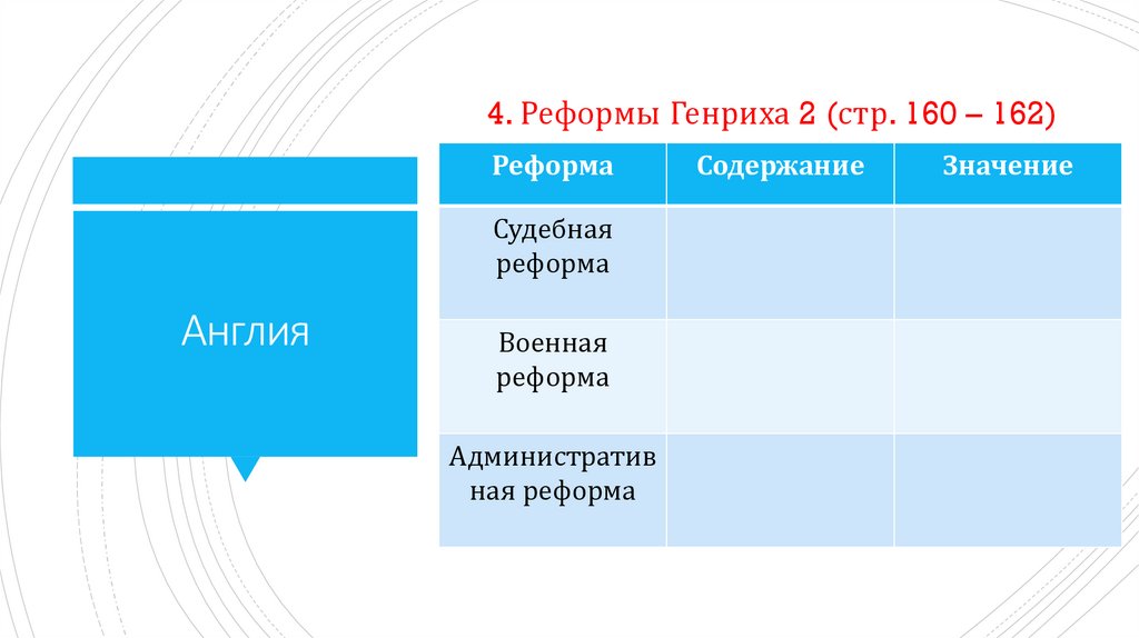 4. Реформы Генриха 2 (стр. 160 – 162)Реформа