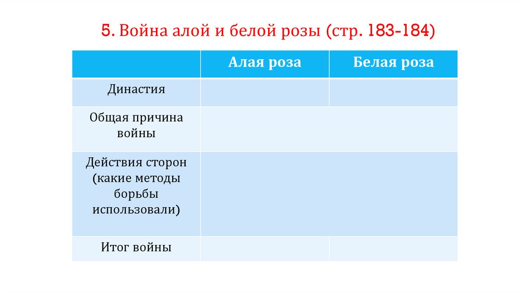 5. Война алой и белой розы (стр. 183-184)Алая роза