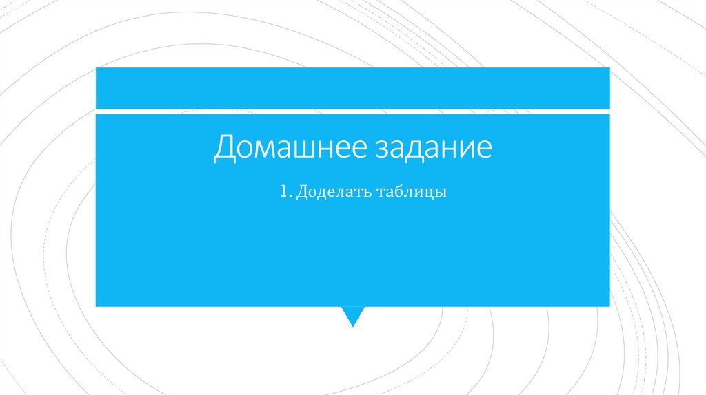 Домашнее задание1. 1. Доделать таблицы