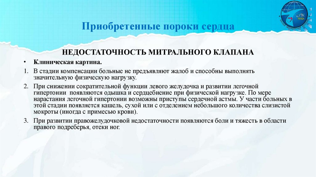 Приобретенные пороки сердцаНЕДОСТАТОЧНОСТЬ МИТРАЛЬНОГО КЛАПАНА