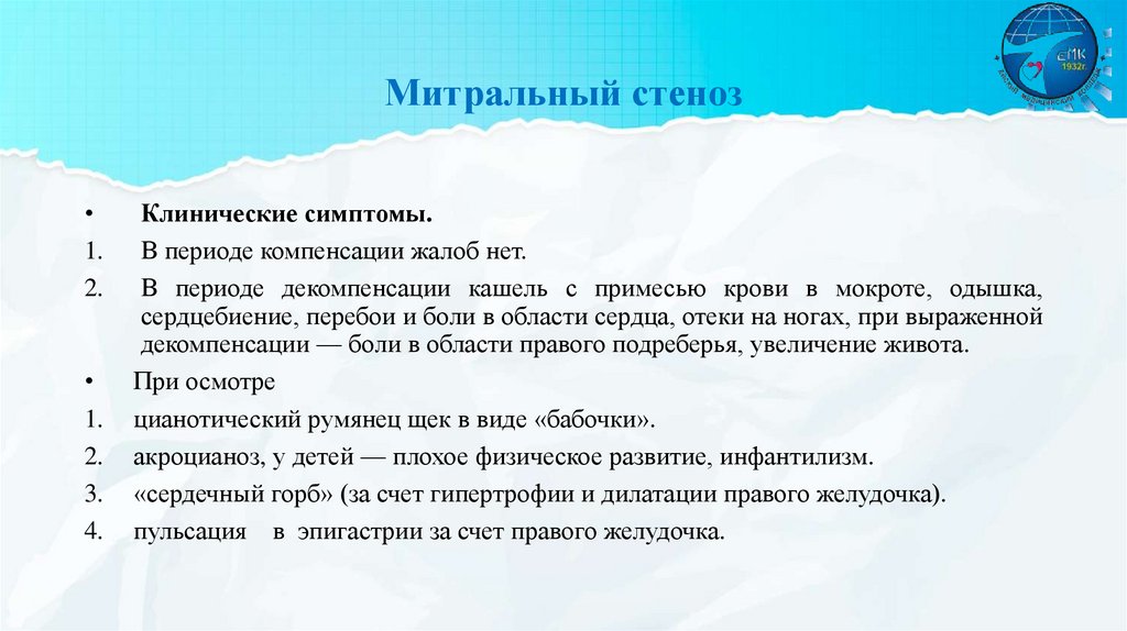1. В стадии компенсации больные не предъявляют жалоб и способны выполнять