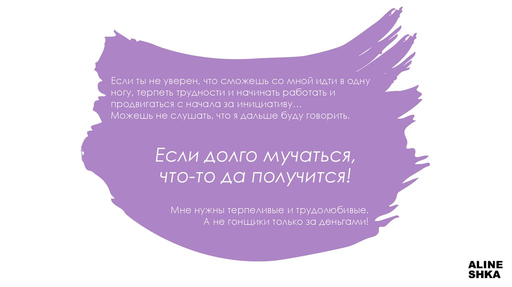 Мне нужны терпеливые и трудолюбивые.