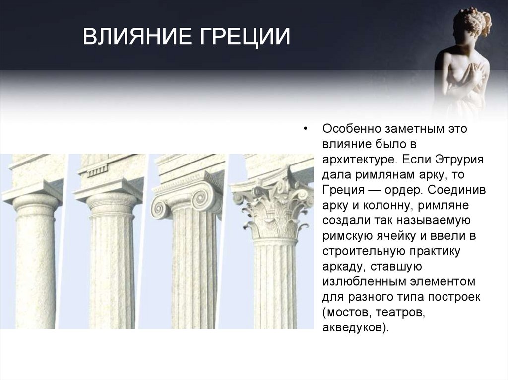 ВЛИЯНИЕ ГРЕЦИИОсобенно заметным это