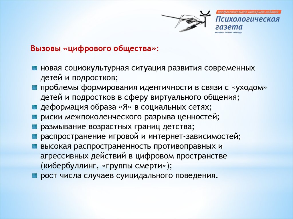 Вызовы «цифрового общества»:новая социокультурная ситуация развития современных