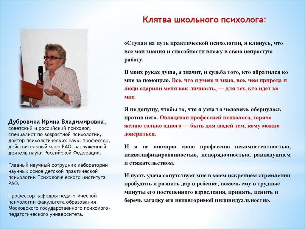 Клятва школьного психолога:«Ступая на путь практической психологии, я клянусь, что