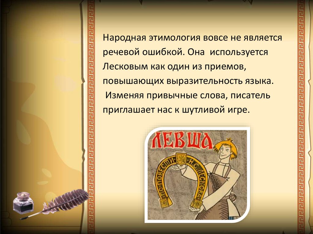Народная этимология вовсе не являетсяречевой ошибкой. Она используется