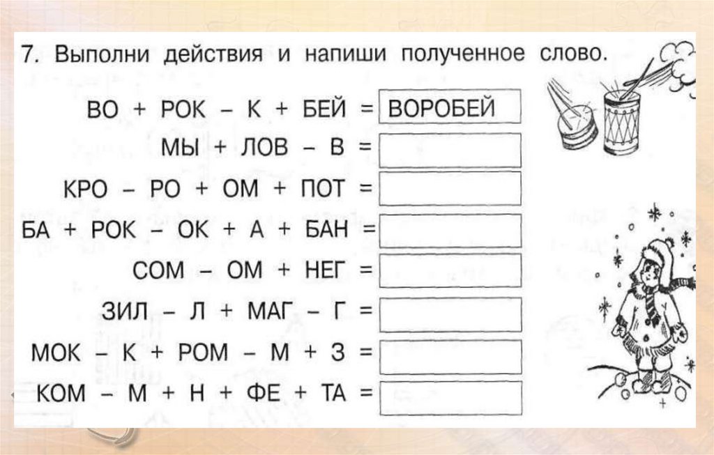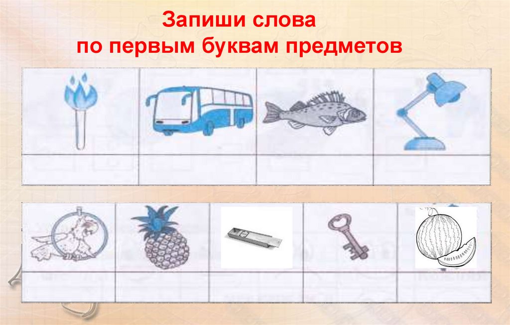 Запиши словапо первым буквам предметов