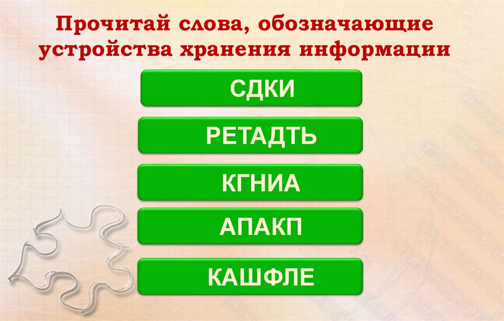 Прочитай слова, обозначающиеустройства хранения информации