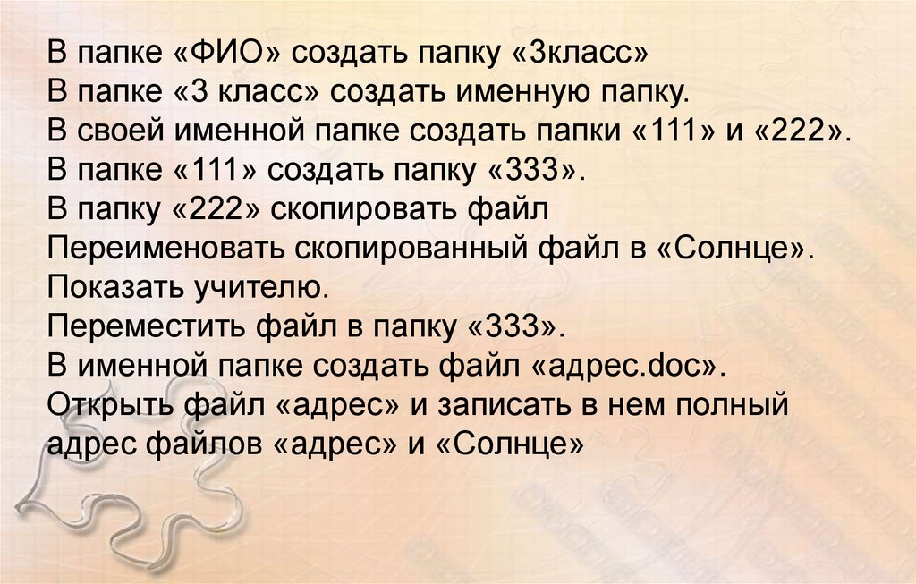 В папке «ФИО» создать папку «3класс»В папке «3 класс» создать именную папку.