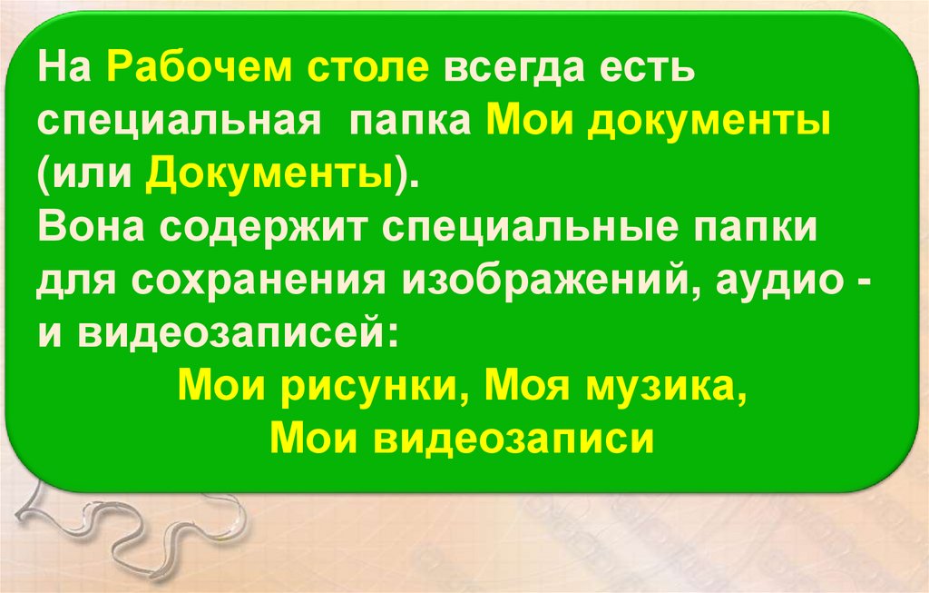 На Рабочем столе всегда естьспециальная папка Мои документы