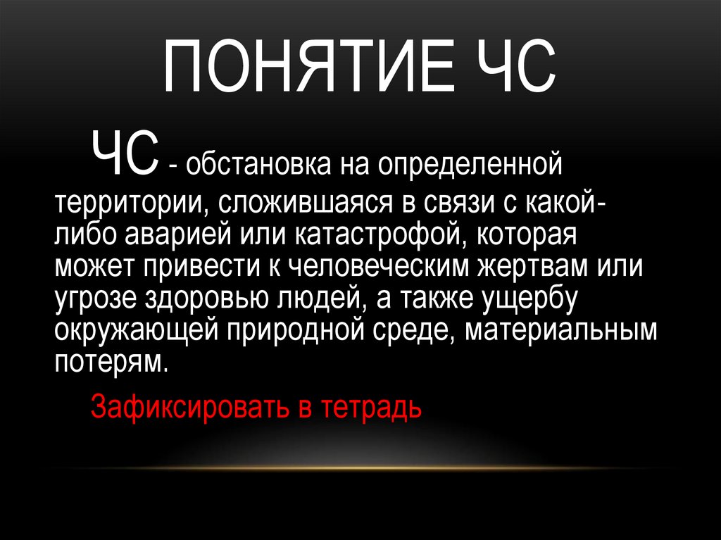 - Понятие ЧС