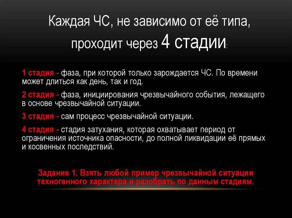 Каждая ЧС, не зависимо от её типа,проходит через 4