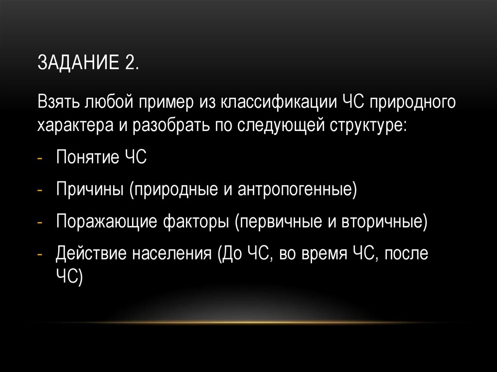 ЗАДАНИЕ 2.Взять любой пример из классификации ЧС природного