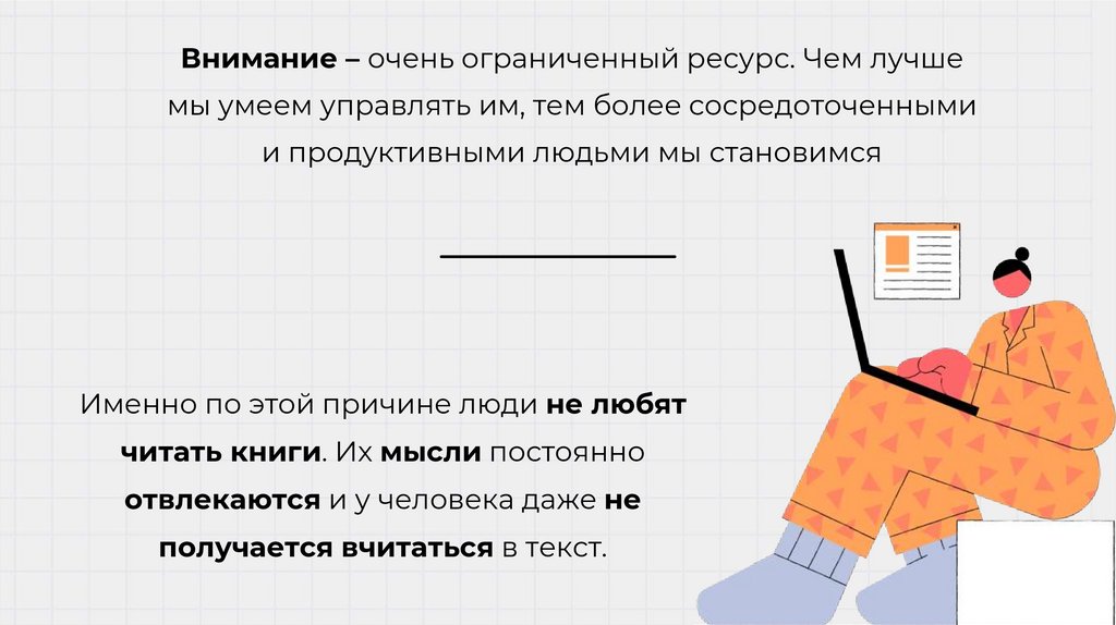 Внимание – очень ограниченный ресурс. Чем лучшемы умеем управлять им, тем более сосредоточенными