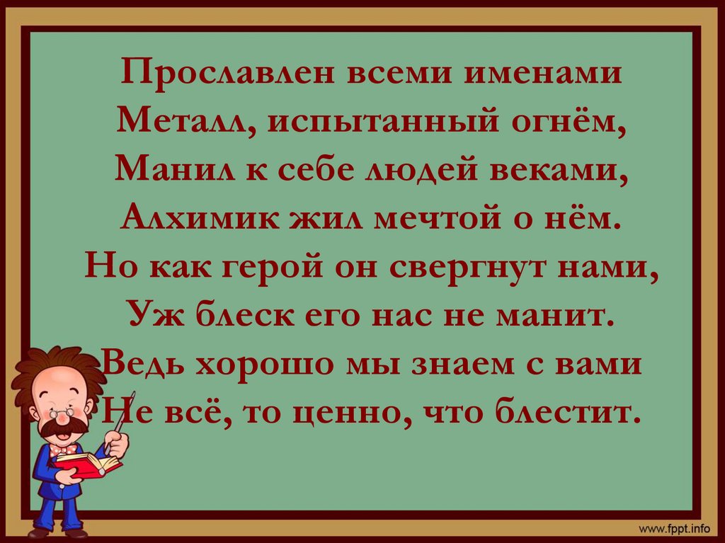 Прославлен всеми именамиМеталл, испытанный огнём,