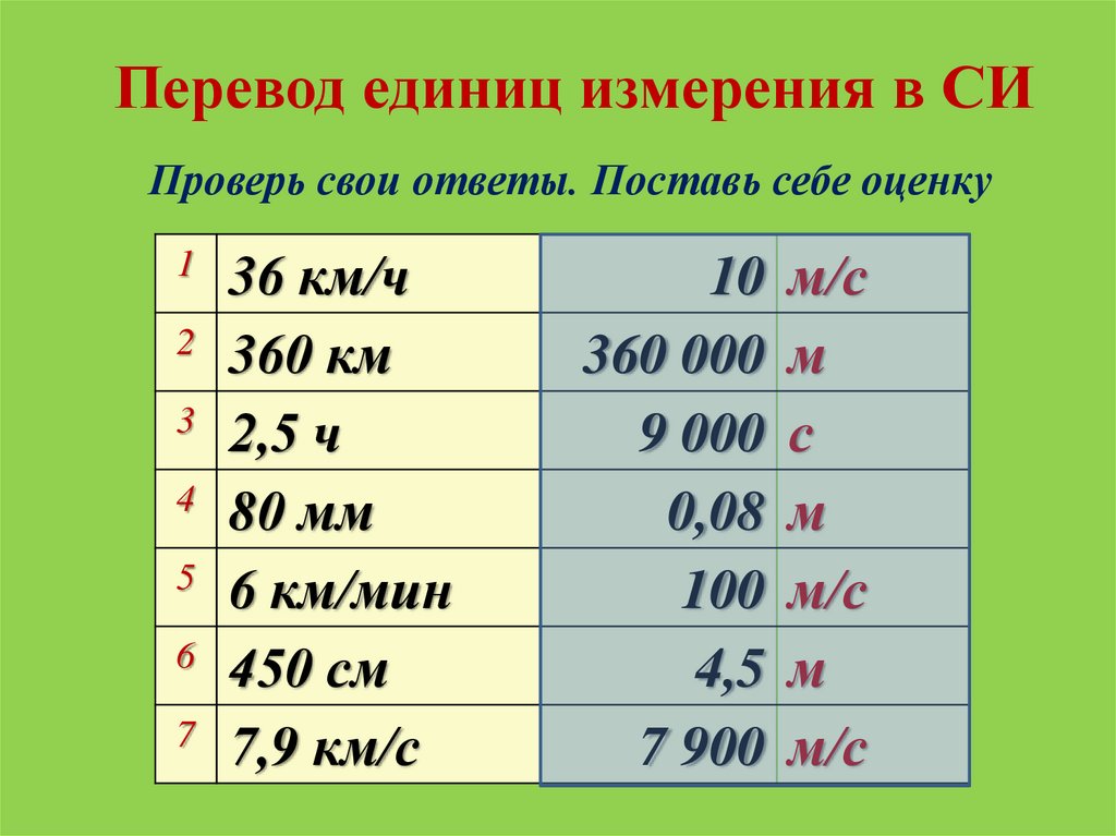 Перевод единиц измерения в СИПроверь свои ответы. Поставь себе оценку