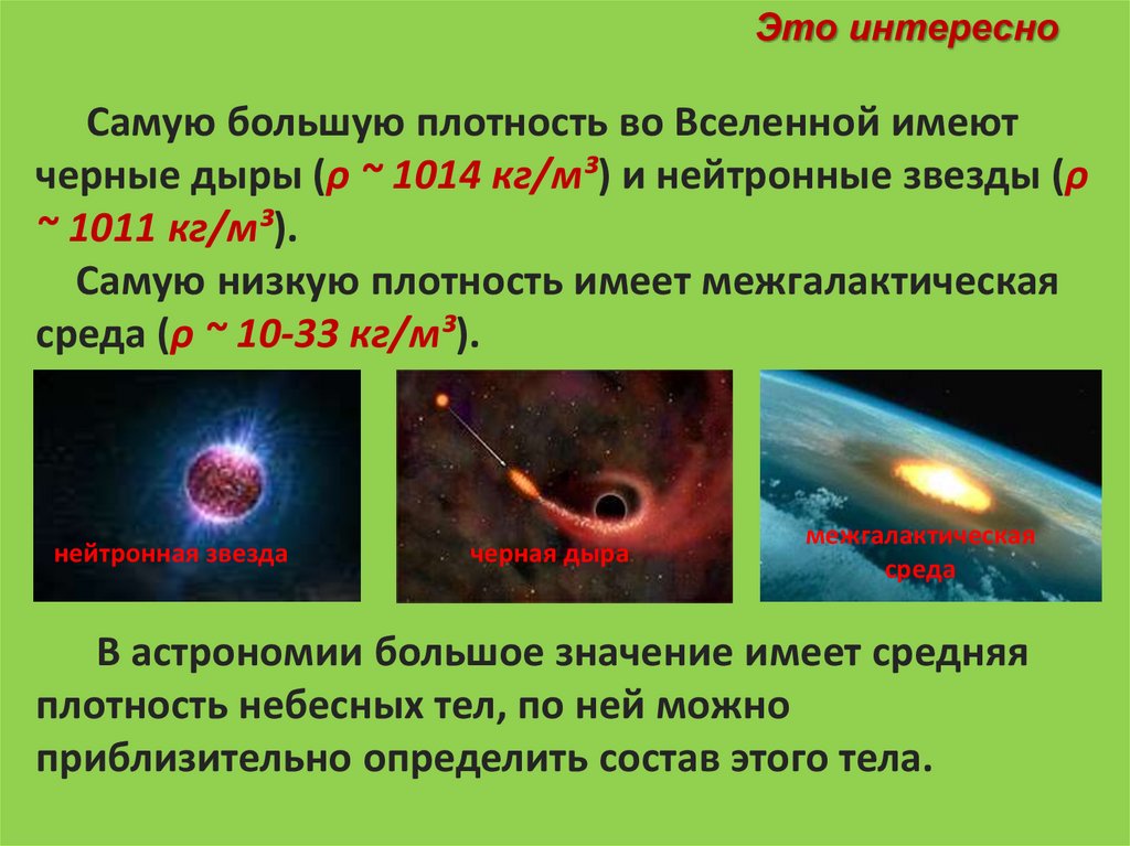 черные дыры (ρ ~ 1014 кг/м³) и нейтронные звезды (ρ