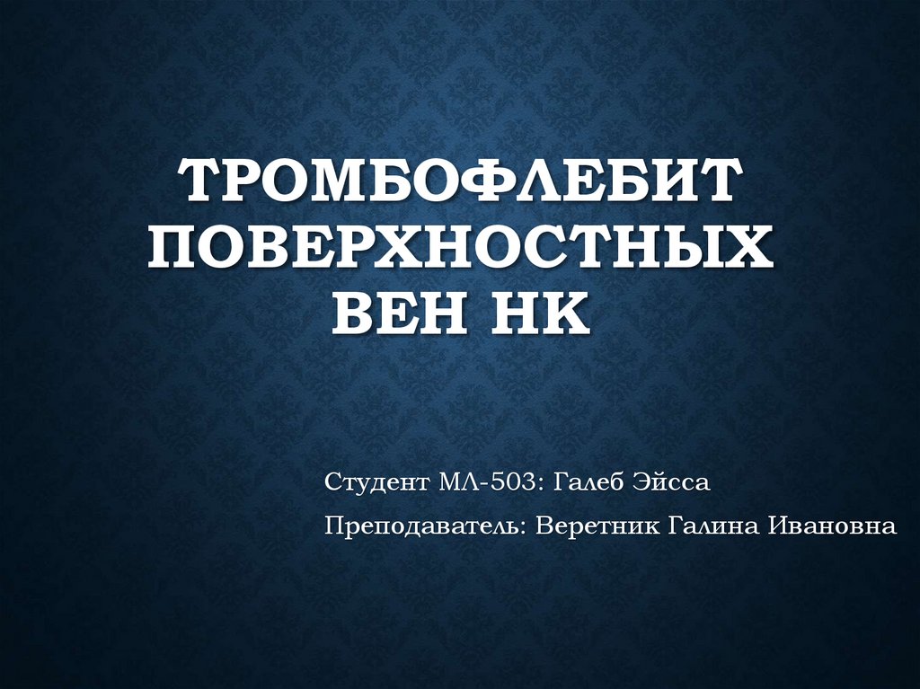 ТРОМБОФЛЕБИТВОСПАЛИТЕЛЬНЫЙ ПРОЦЕСС ВО ВНУТРЕННЕЙ ВЕНОЗНОЙ СТЕНКЕ С