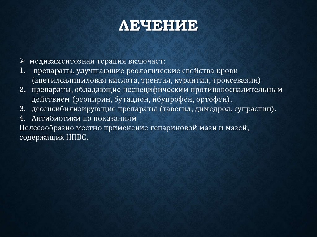 ЛЕЧЕНИЕмедикаментозная терапия включает:
