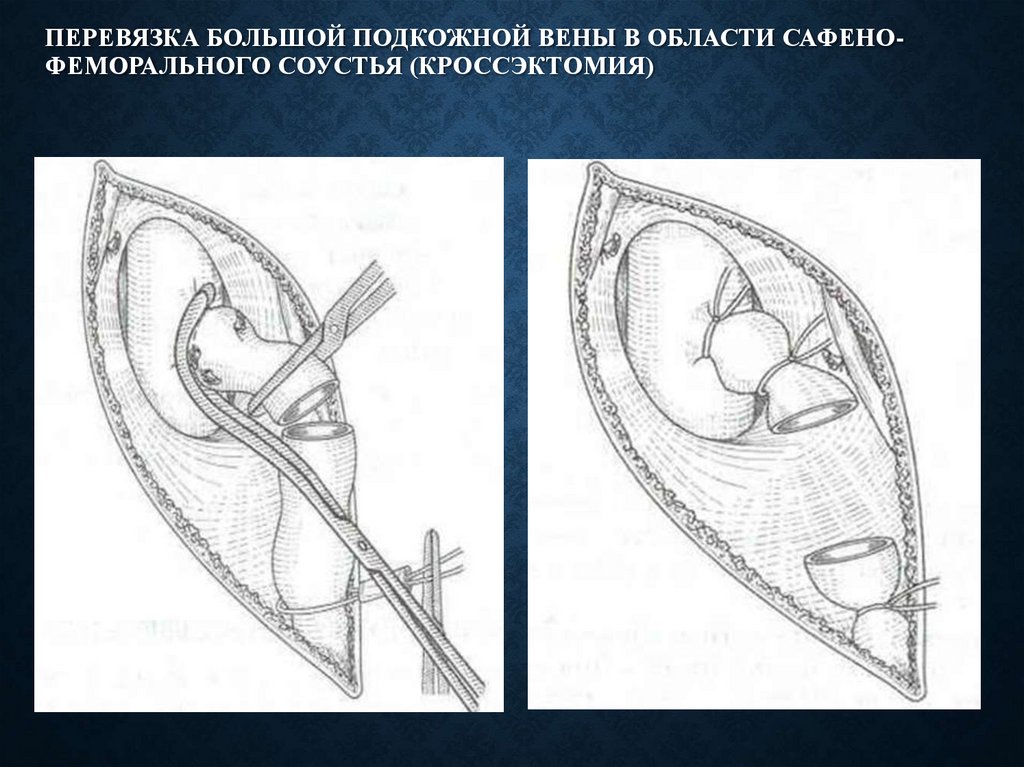 ПЕРЕВЯЗКА БОЛЬШОЙ ПОДКОЖНОЙ ВЕНЫ В ОБЛАСТИ САФЕНОФЕМОРАЛЬНОГО СОУСТЬЯ (КРОССЭКТОМИЯ)17.