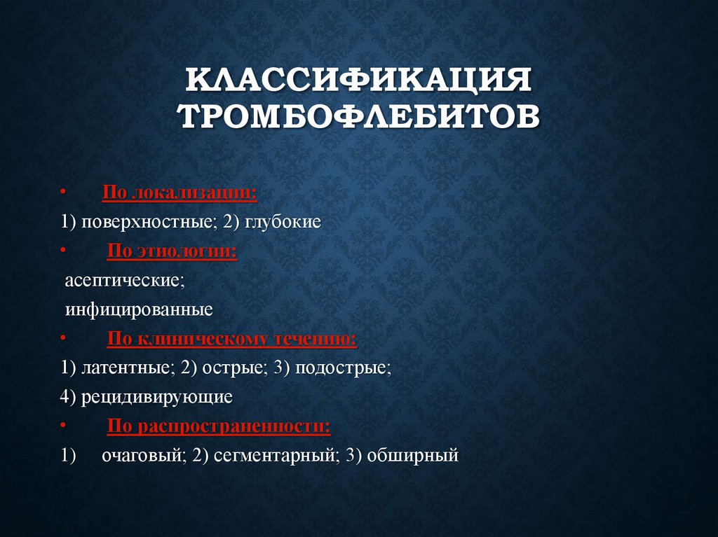 КЛАССИФИКАЦИЯТРОМБОФЛЕБИТОВ