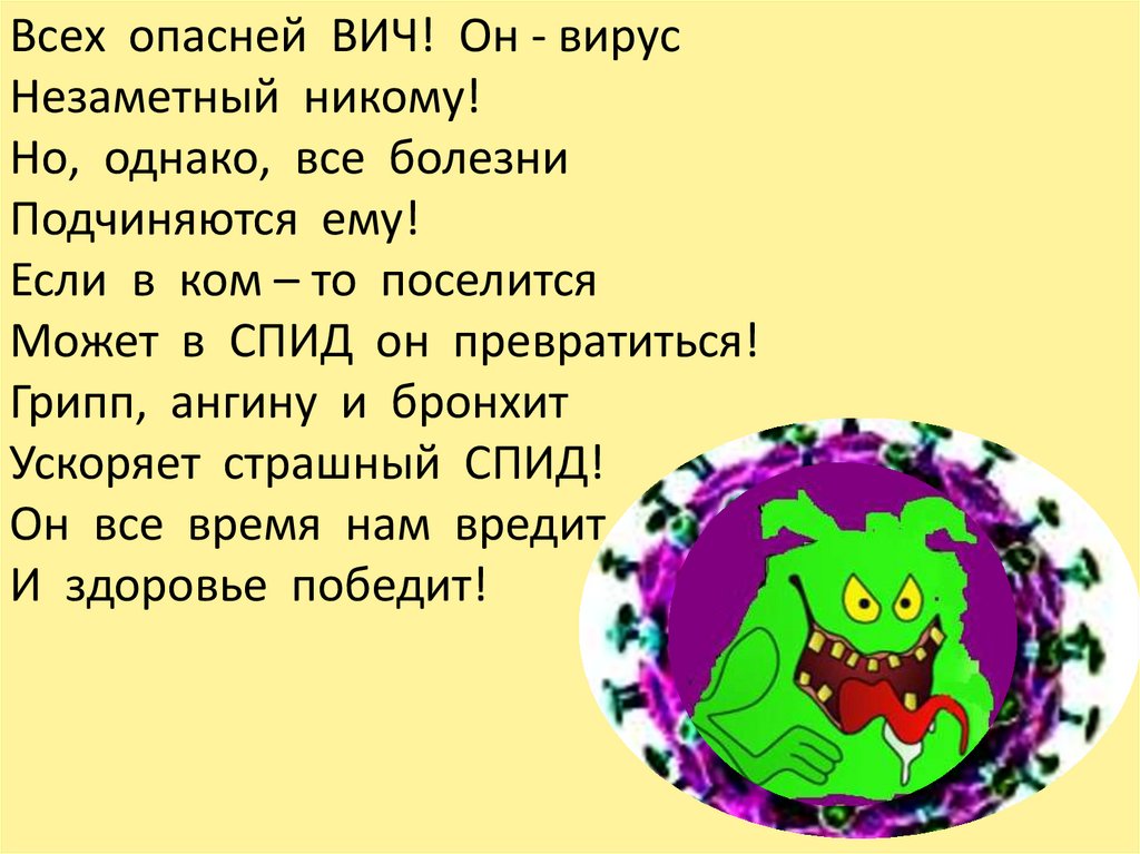 Всех опасней ВИЧ! Он - вирусНезаметный никому!