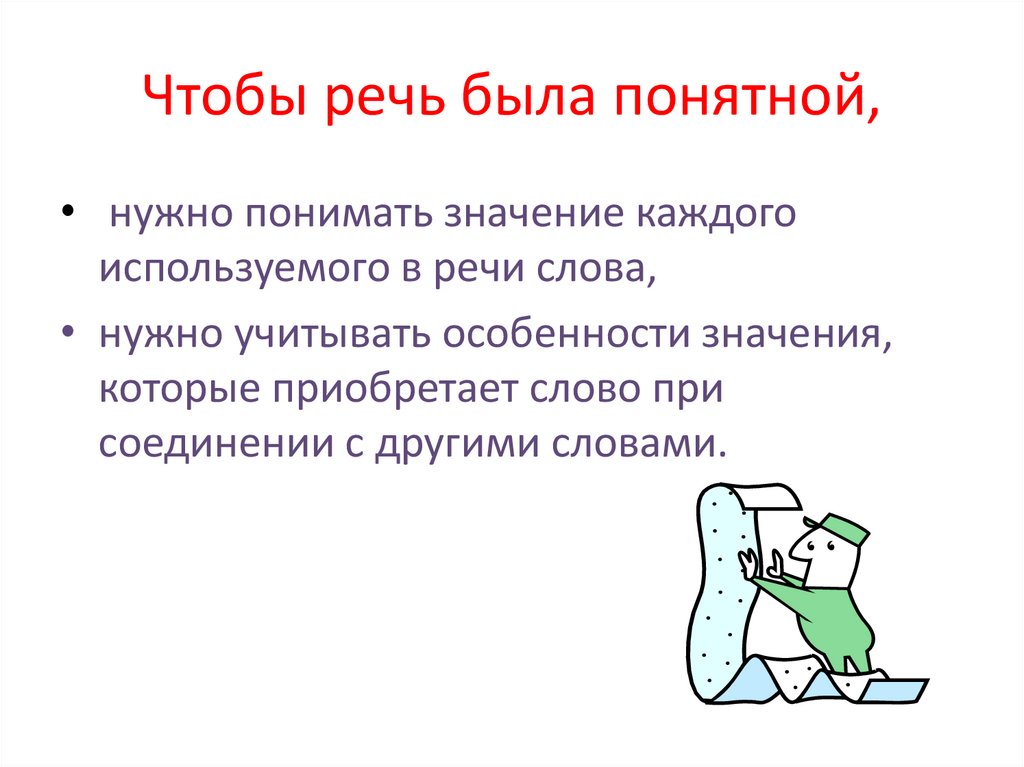 Чтобы речь была понятной,• нужно понимать значение каждого