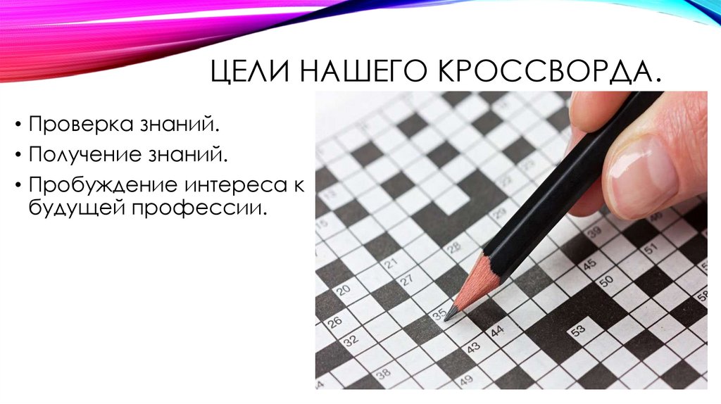 ЦЕЛИ НАШЕГО КРОССВОРДА.• Проверка знаний.