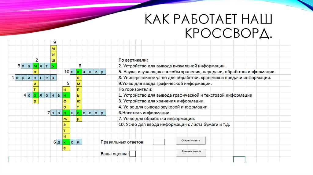 Кроссворд в ms excel