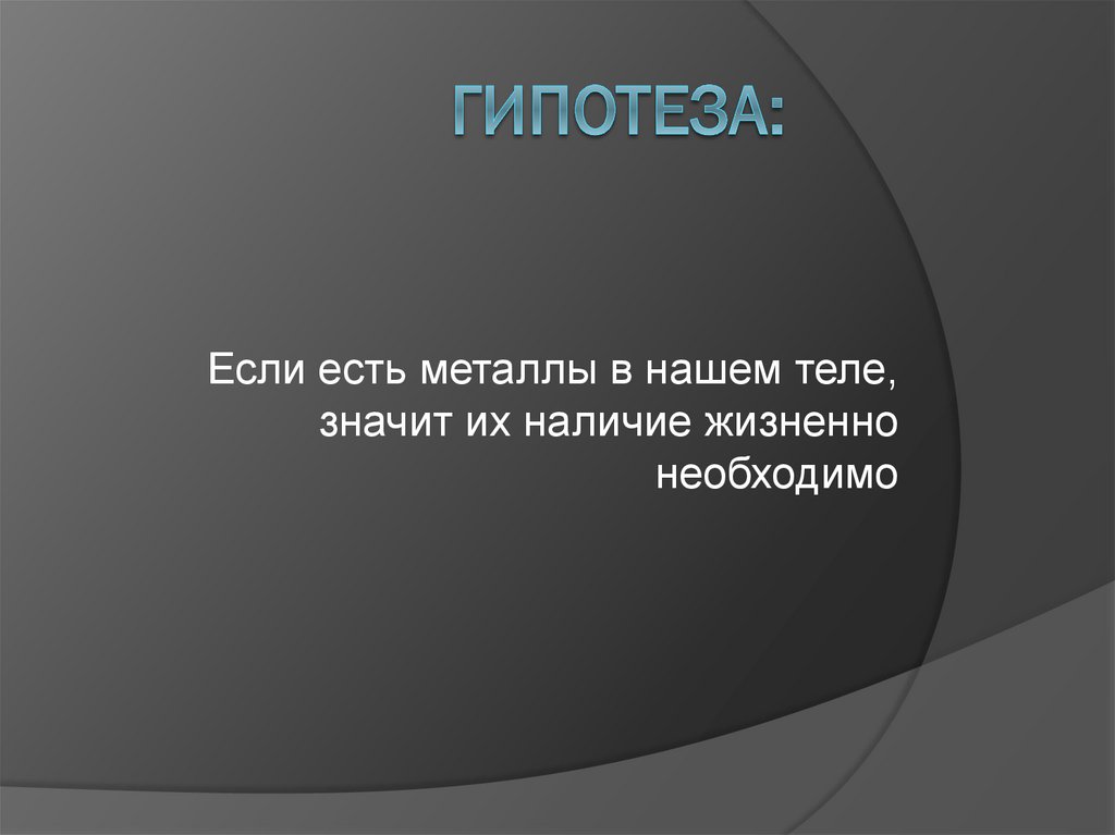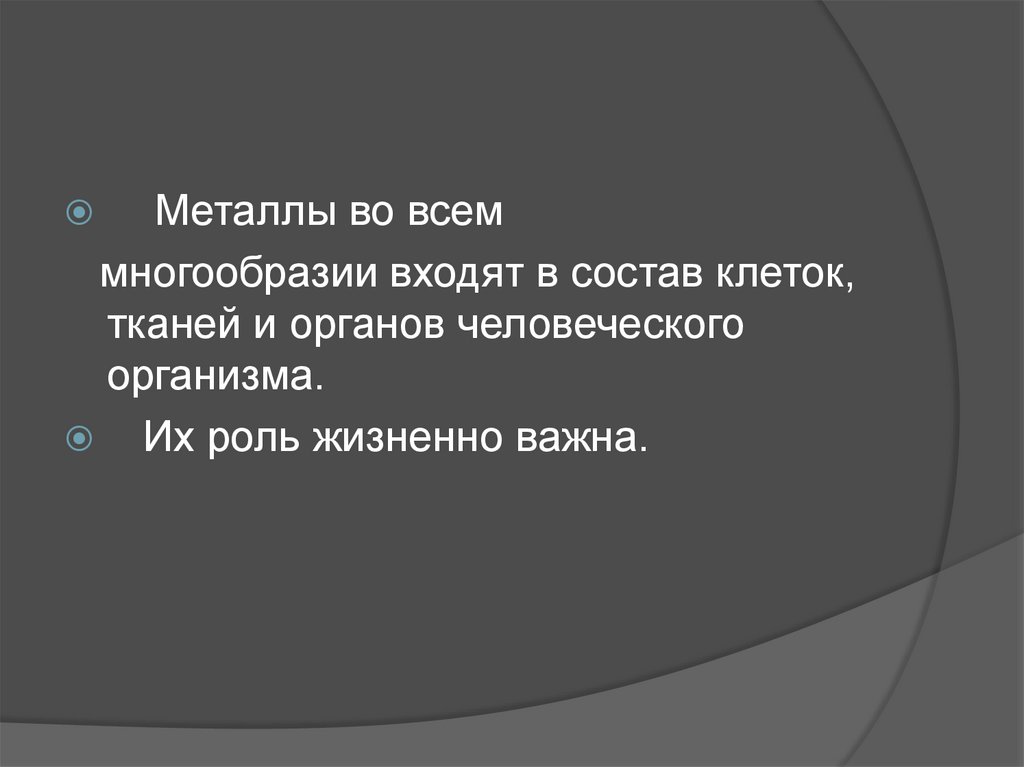 Если есть металлы в нашем теле,значит их наличие жизненно