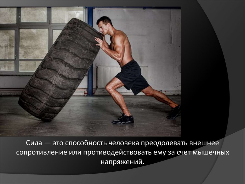 Сила — это способность человека преодолевать внешнеесопротивление или противодействовать ему за счет мышечных