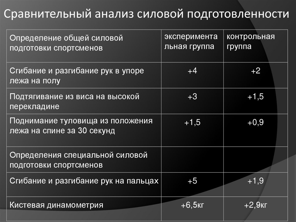Сравнительный анализ силовой подготовленностиОпределение общей силовой