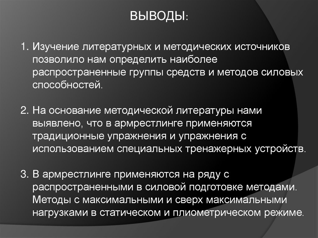 ВЫВОДЫ:1. Изучение литературных и методических источников